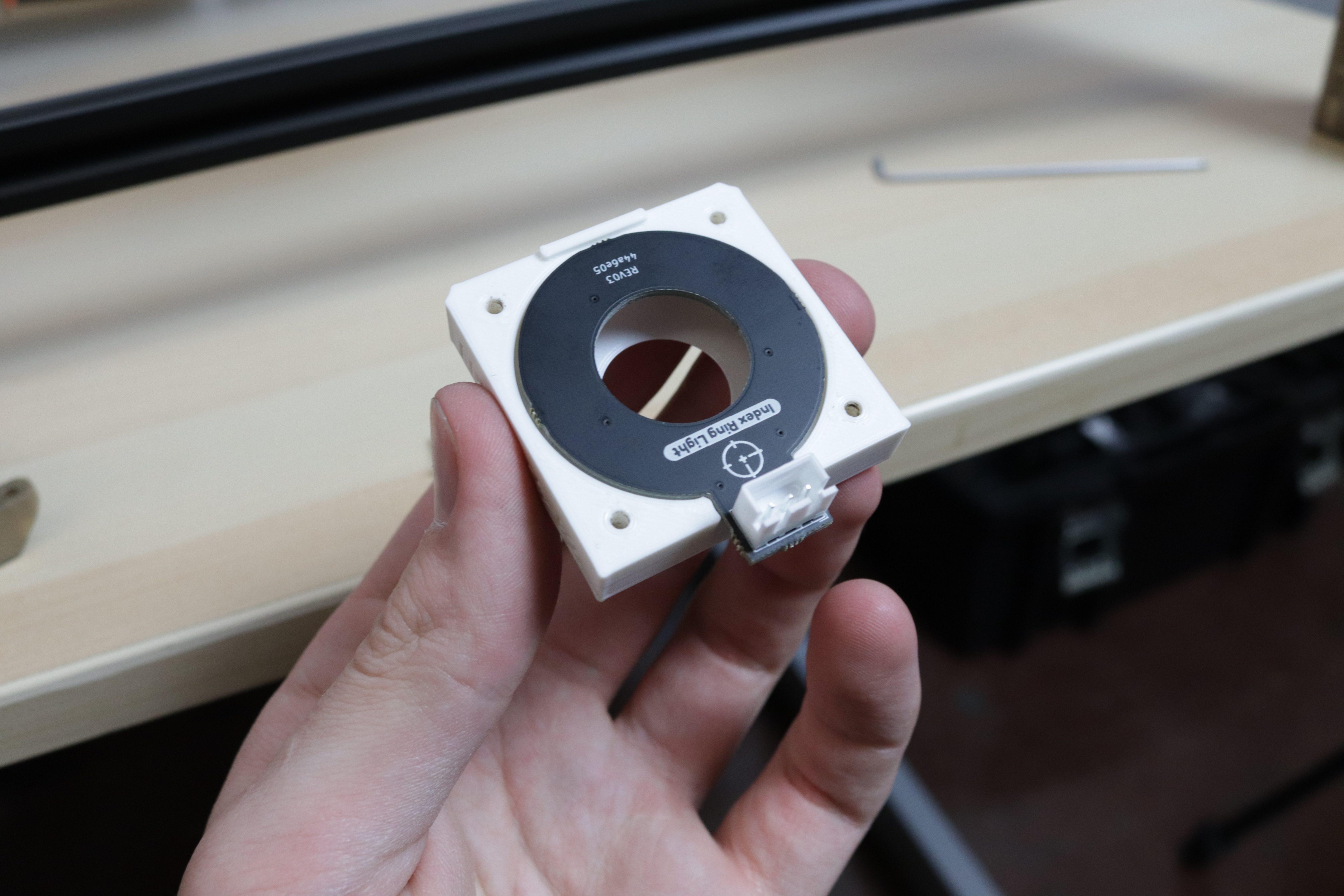 Top Camera Mount. These two prints will pinch the top ring light in place.