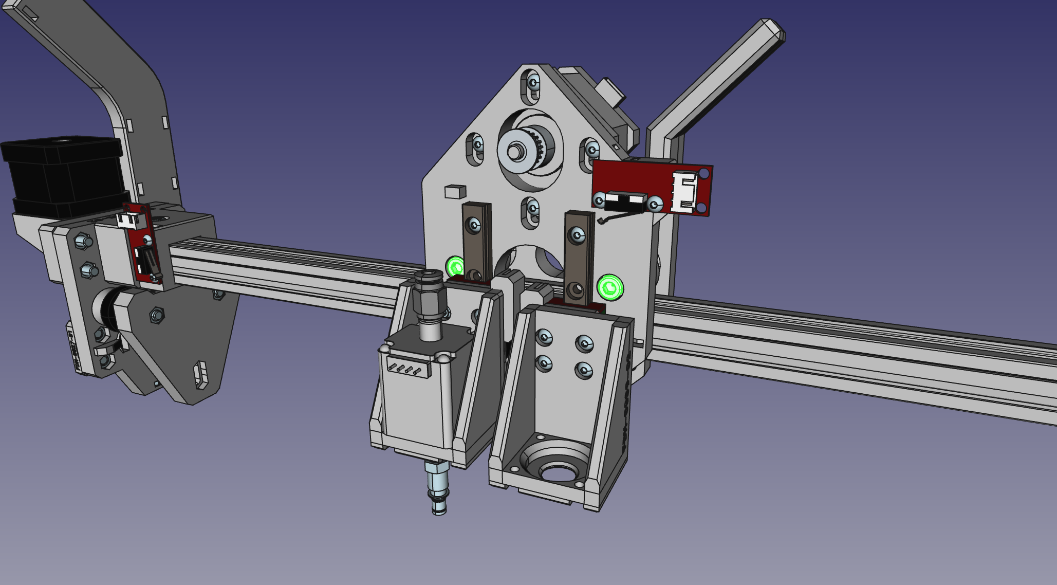 Fit the X gantry on top of the Y gantry rail. Make sure the X motor is on the left side with the front of the X gantry facing you.