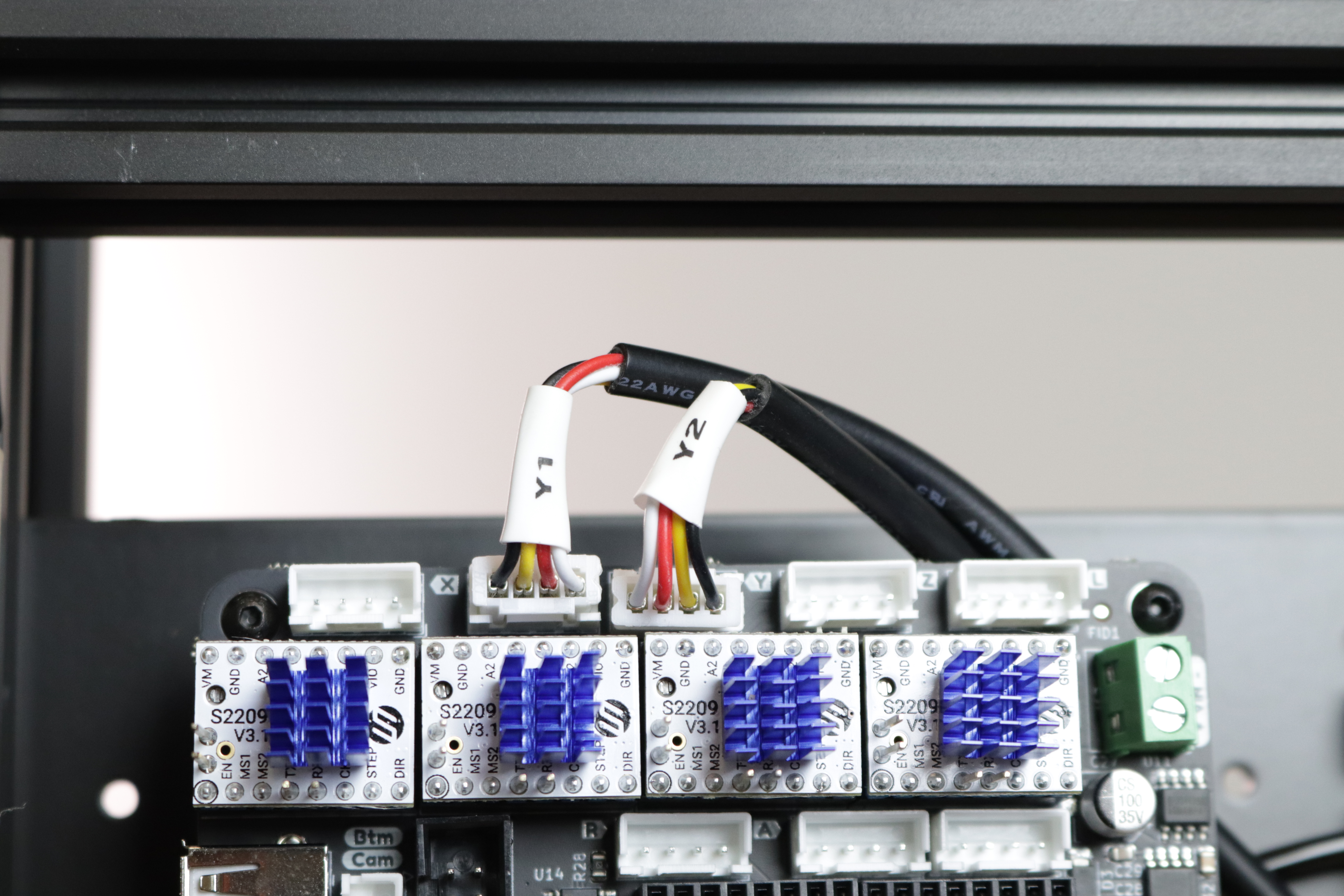 Y1into the left Y motor port on the motherboard, and plug theY2cable into the right one. -