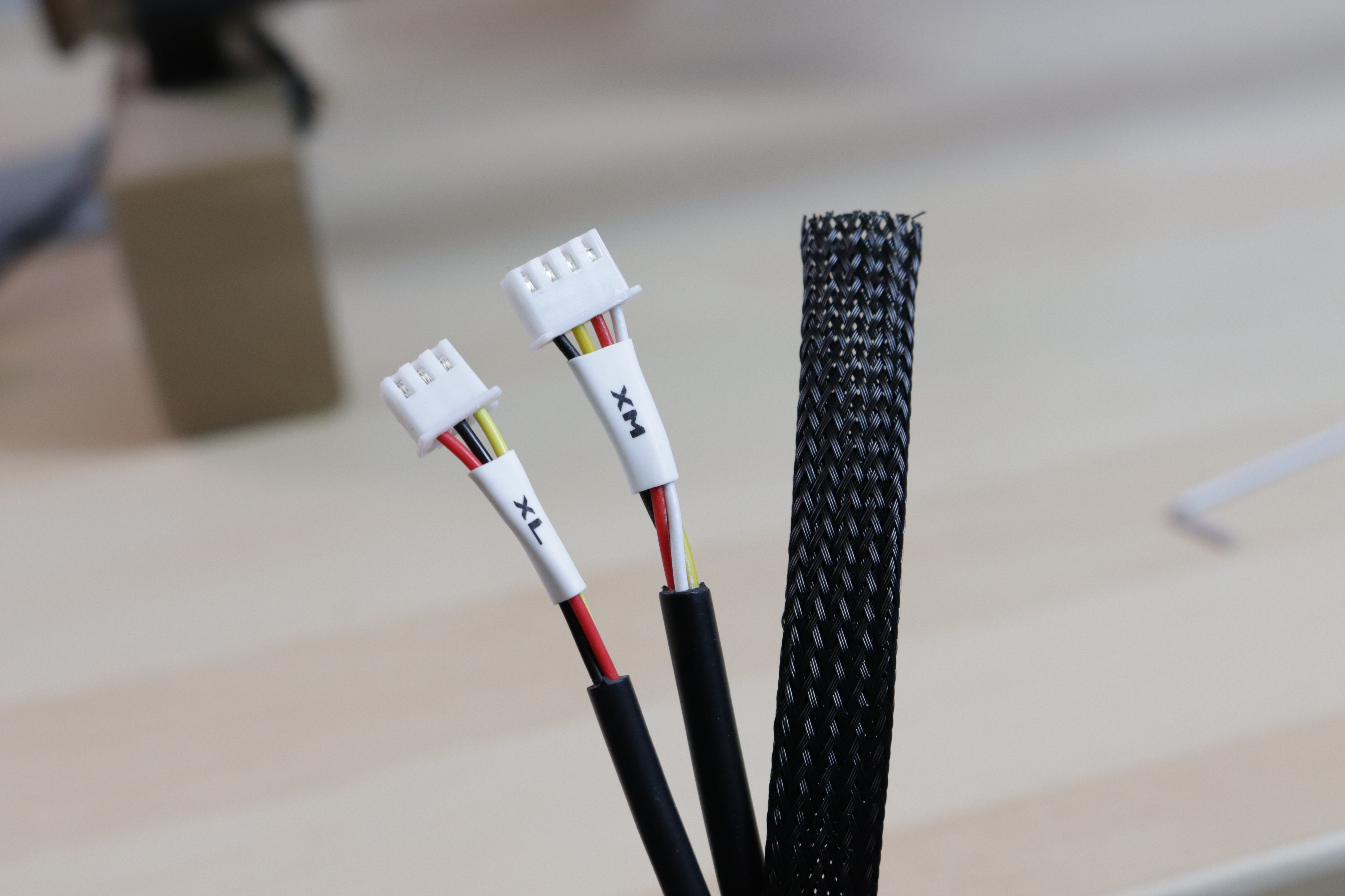To begin, we'll get these two cables laid out at the correct spacing. XL and XM should be perfectly aligned on the label side, no offset.