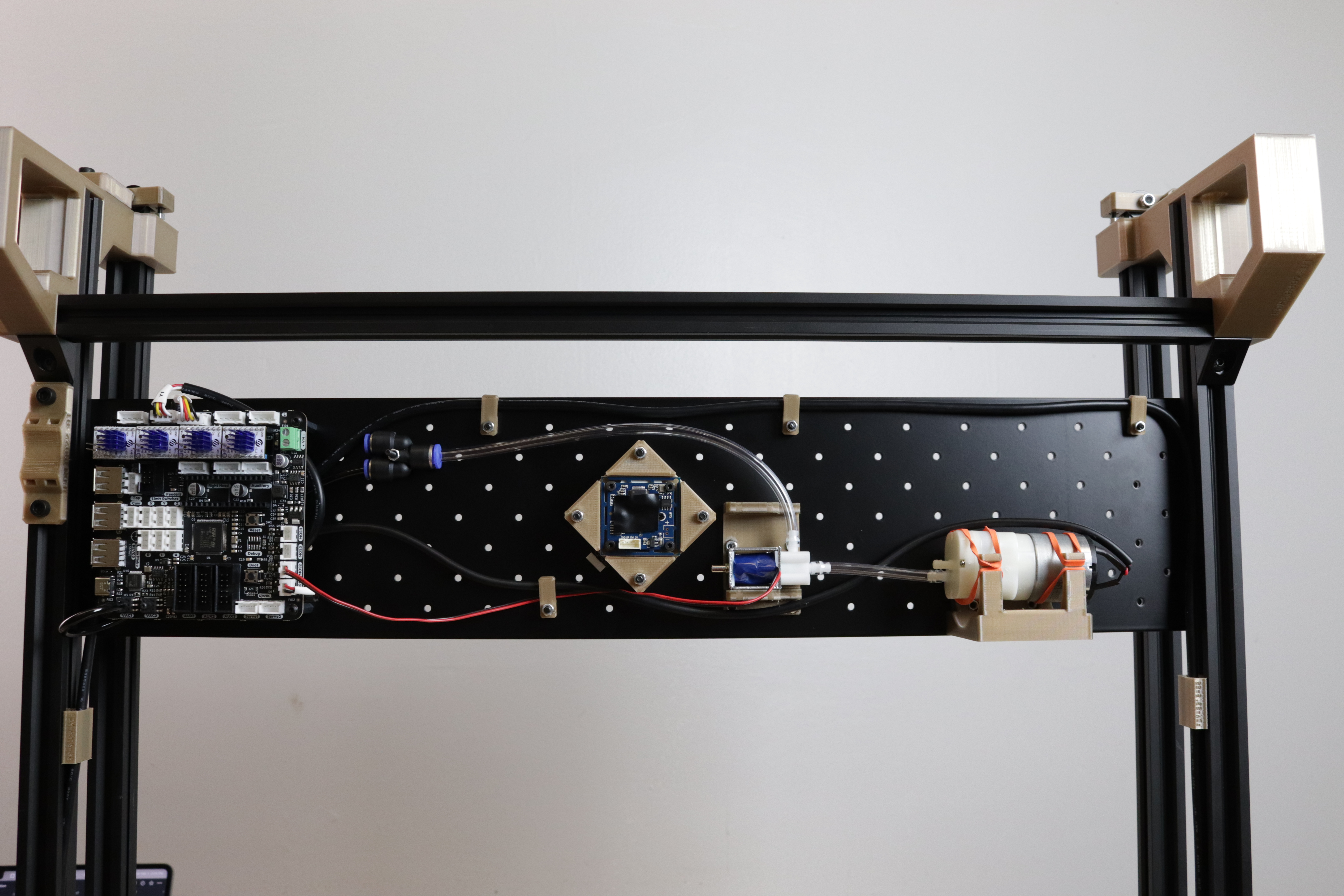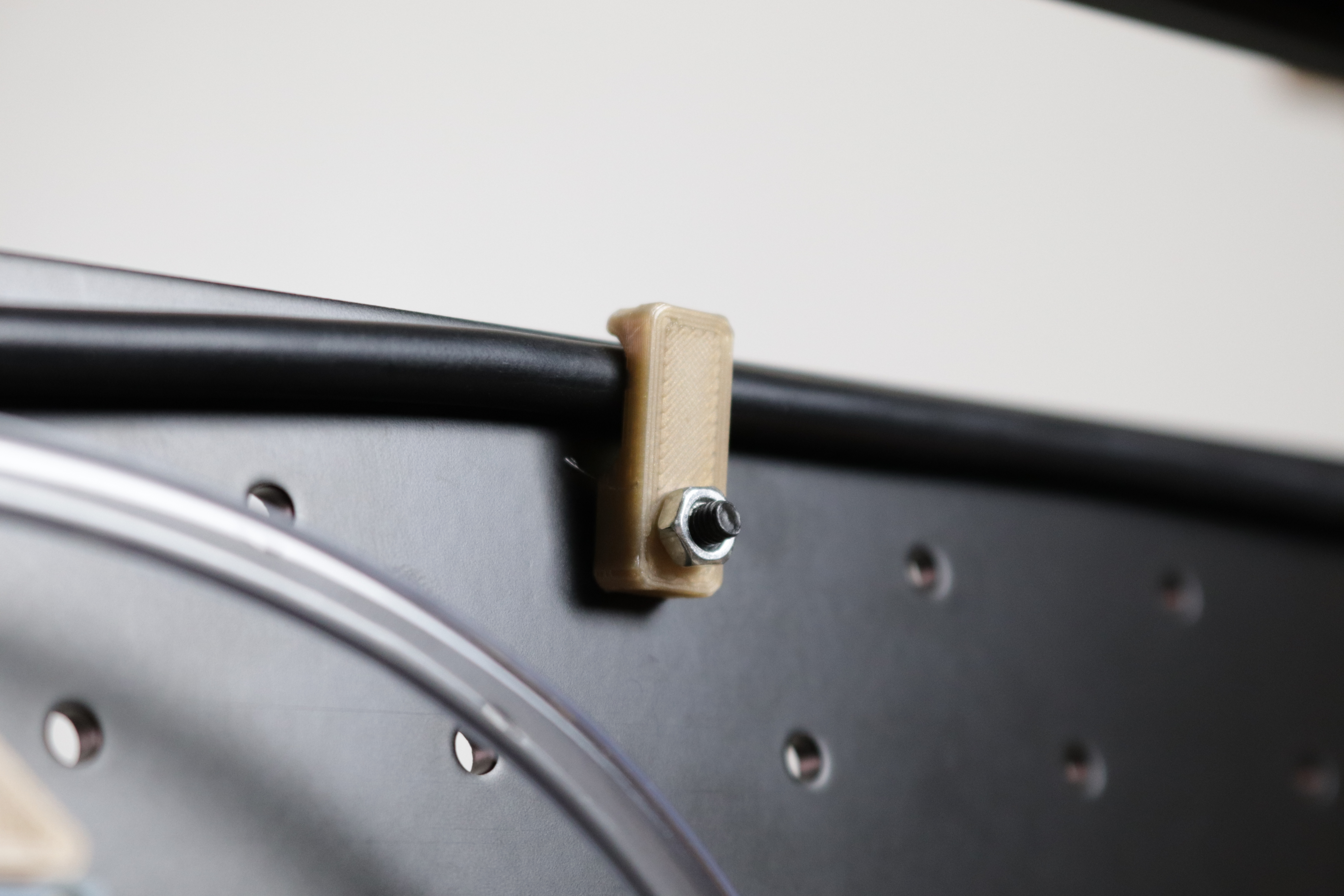 Cable Clamps, three M3x14mm bolts, and three M3 nuts to hold the right side cable on the staging plate and route it towards the motherboard neatly. -