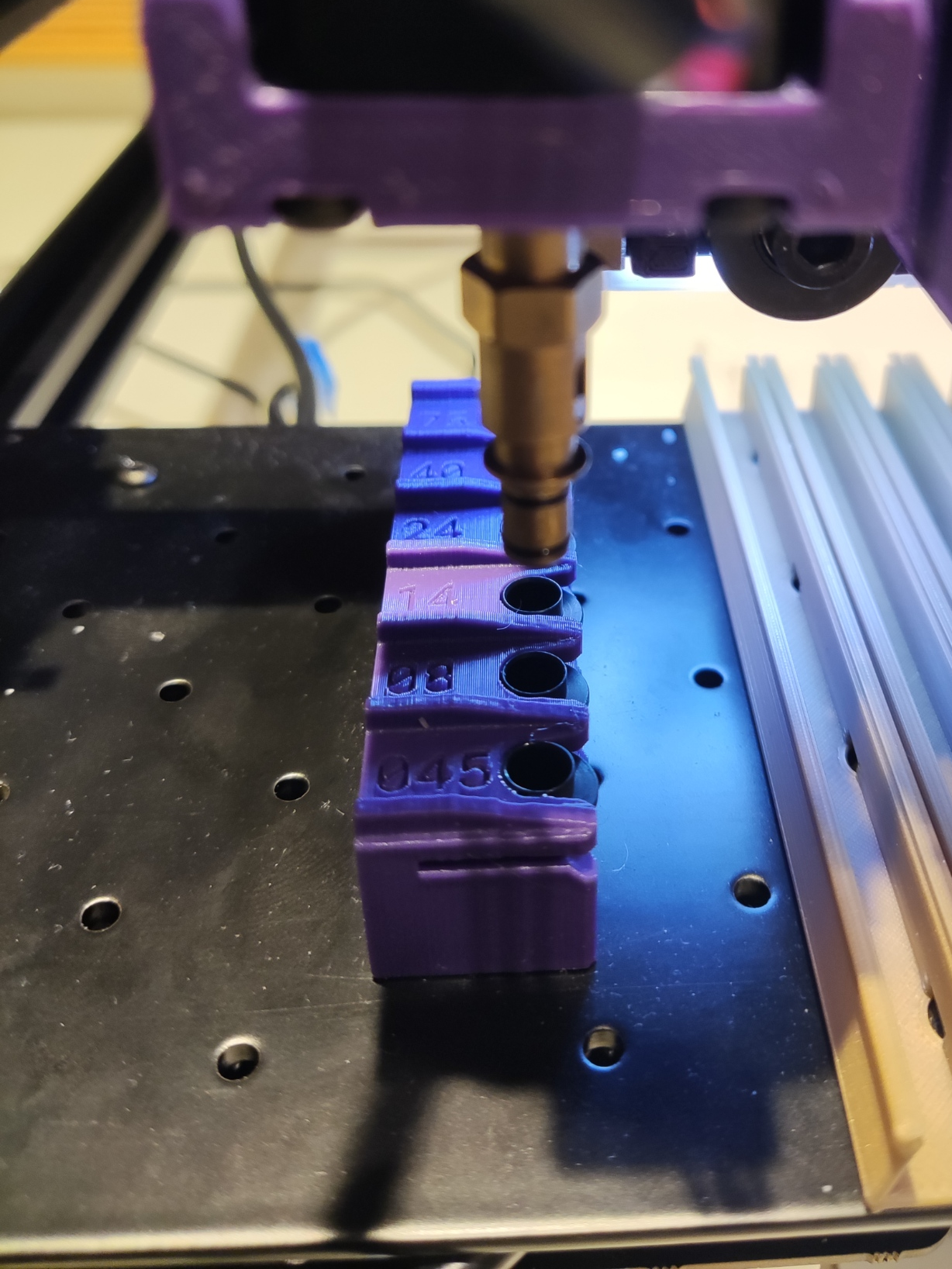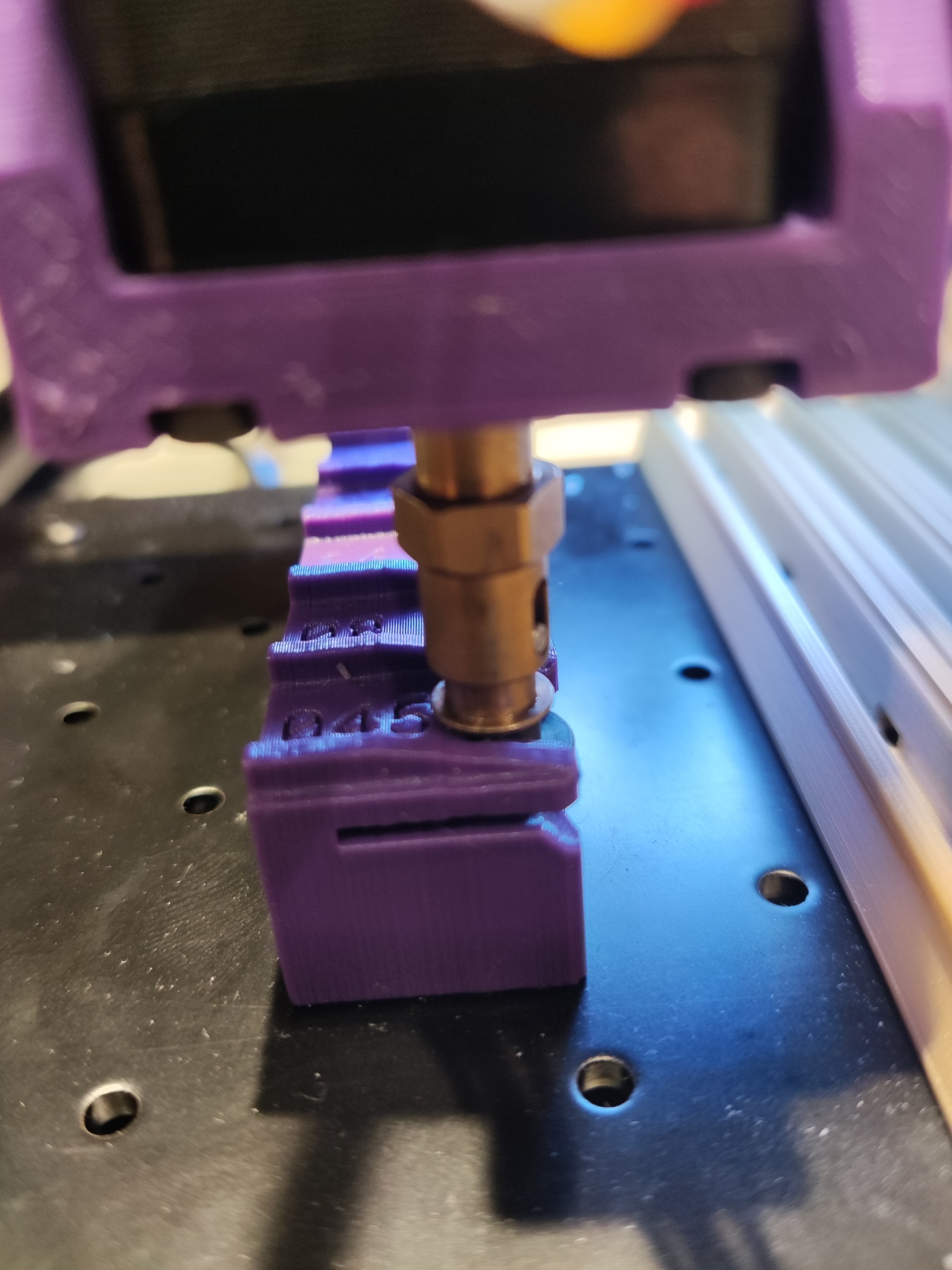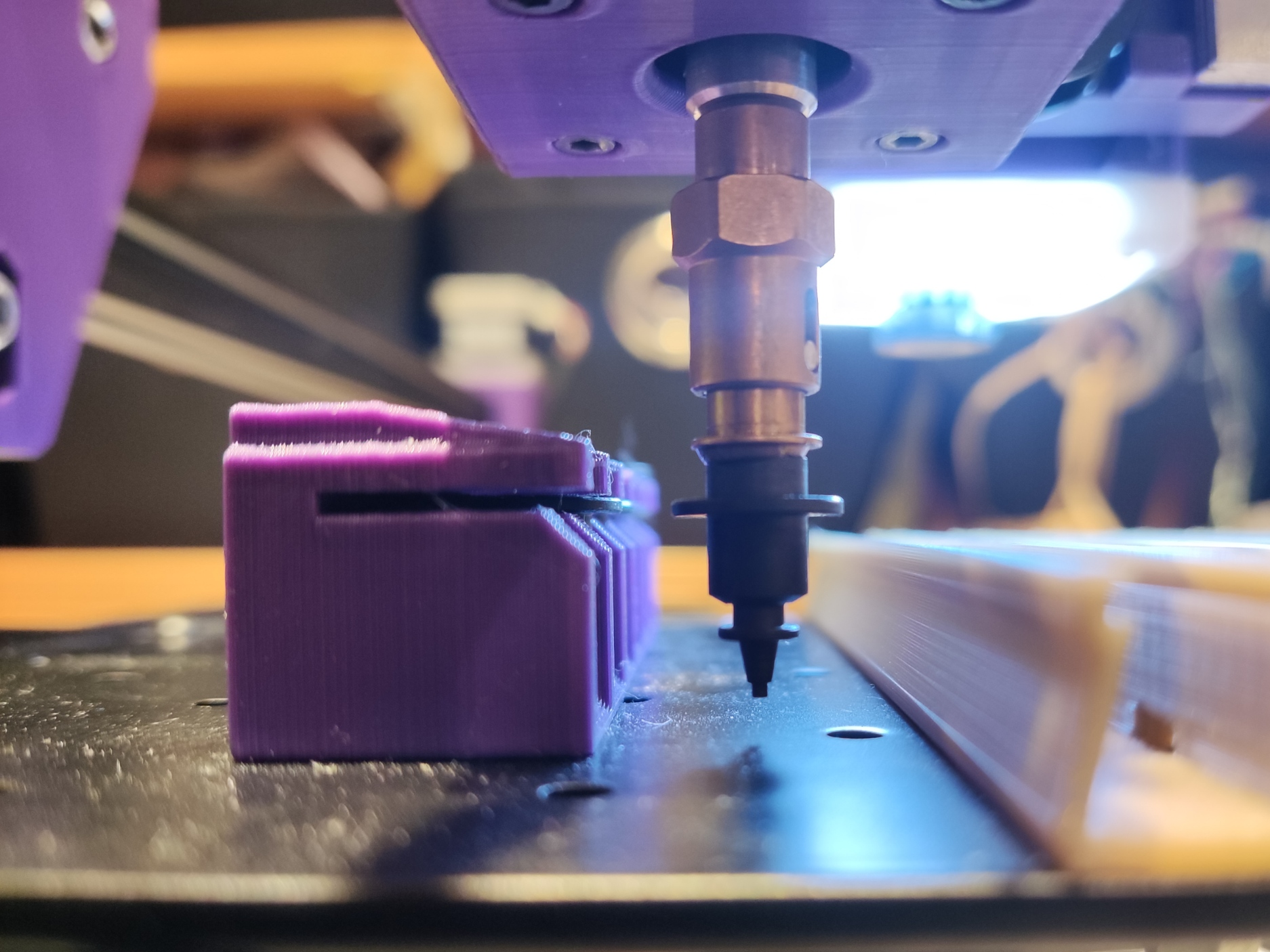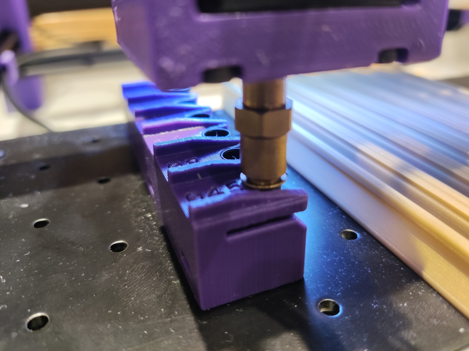 Be careful not to crash your nozzle tip or toolhead into any of the components mounted on your staging plate, especially the nozzle holder. Be especially careful if you have high amounts of backlash compensation, which can cause your tool head to move in unexpected directions when jogging to eliminate backlash. Be aware of your machine's Safe Z axis settings as well, as they can cause the tool head to raise between moves to avoid crashing, which may actually be undesirable here.