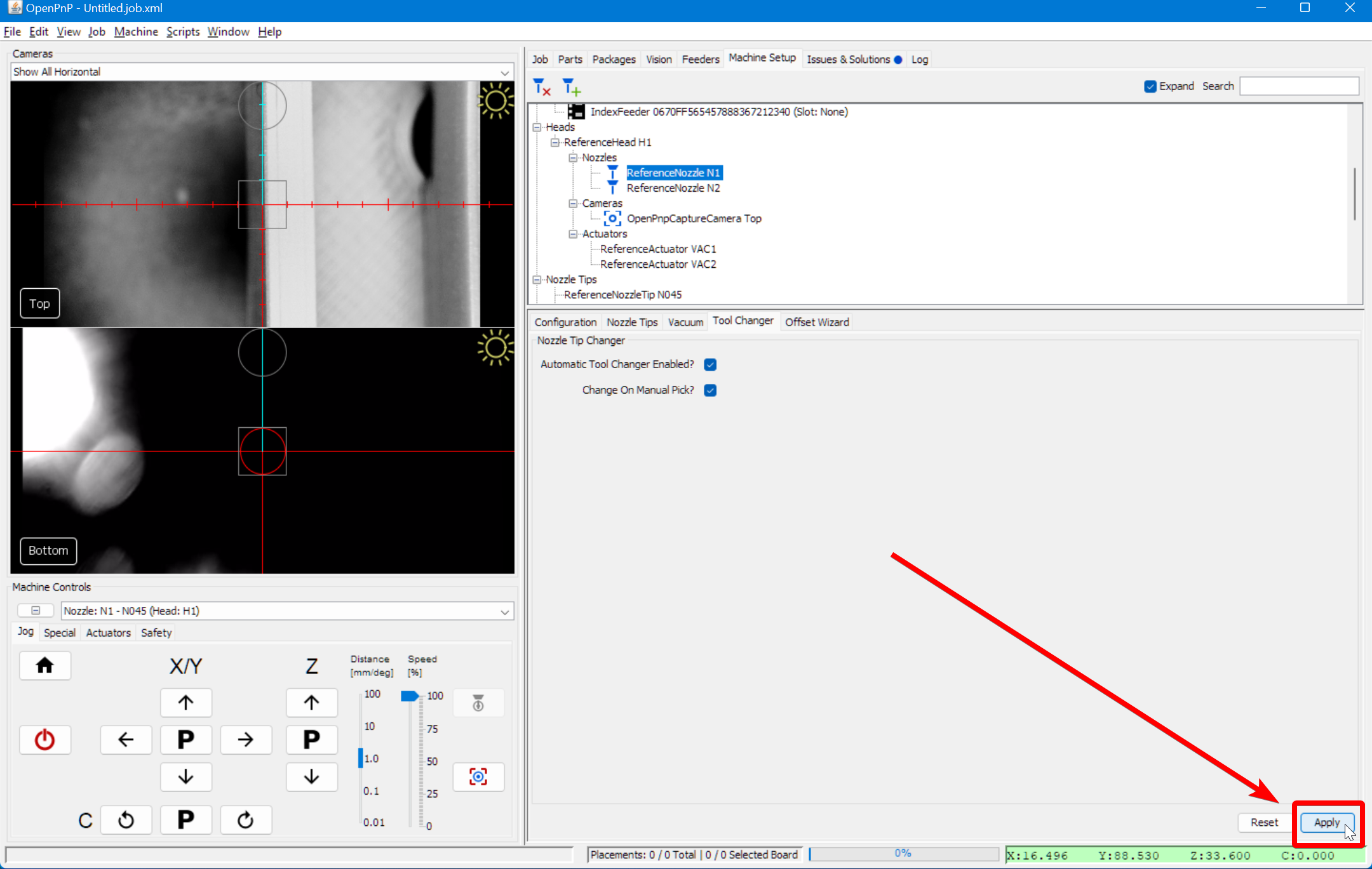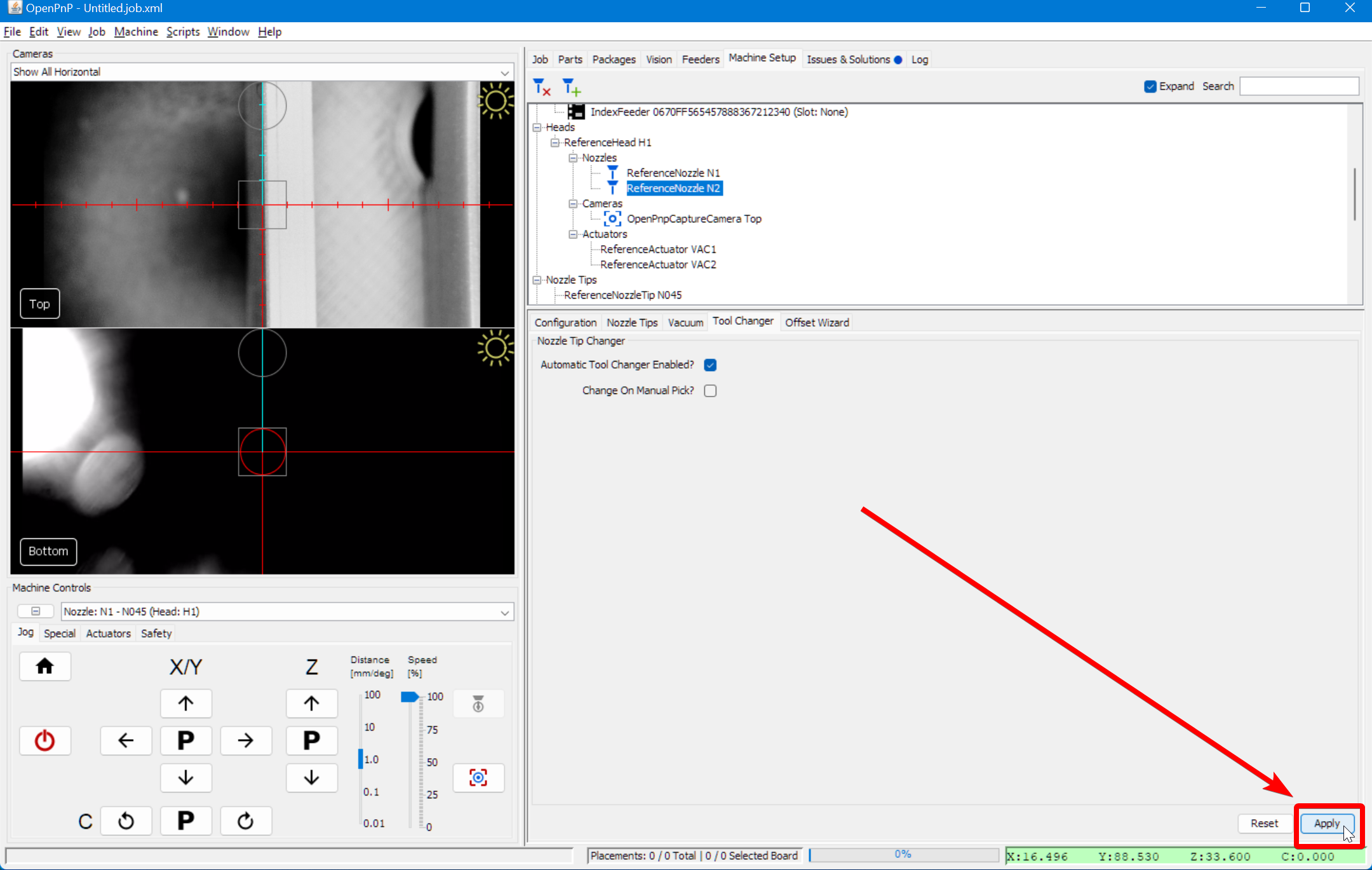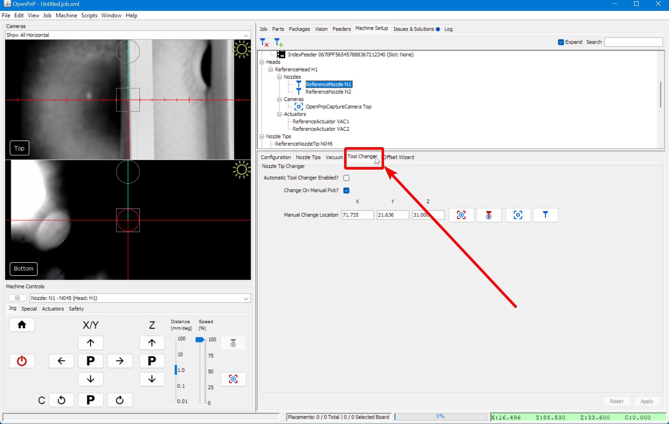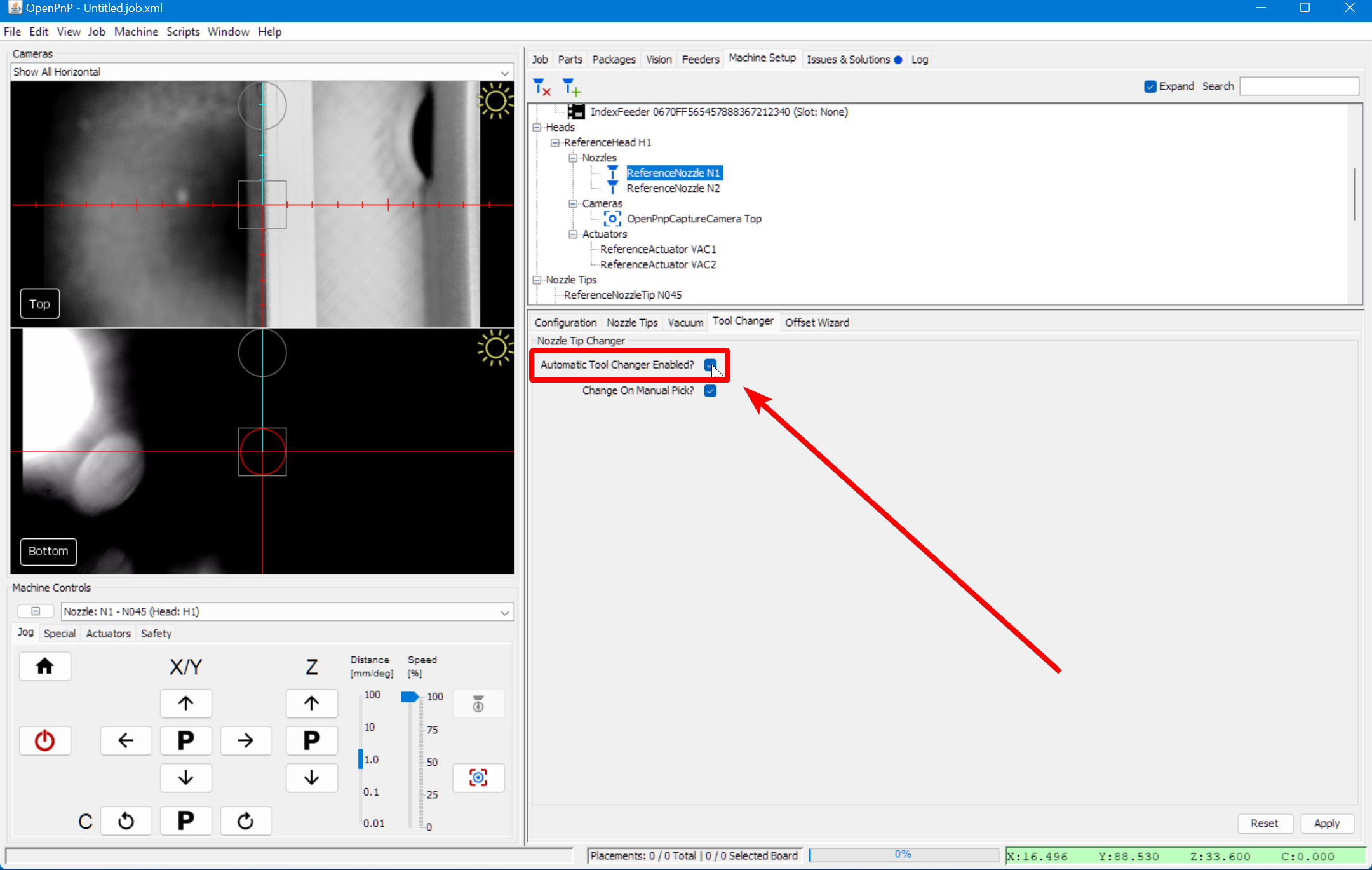 Now that your positions are set, you can enable automatic tool changing in OpenPnP.
