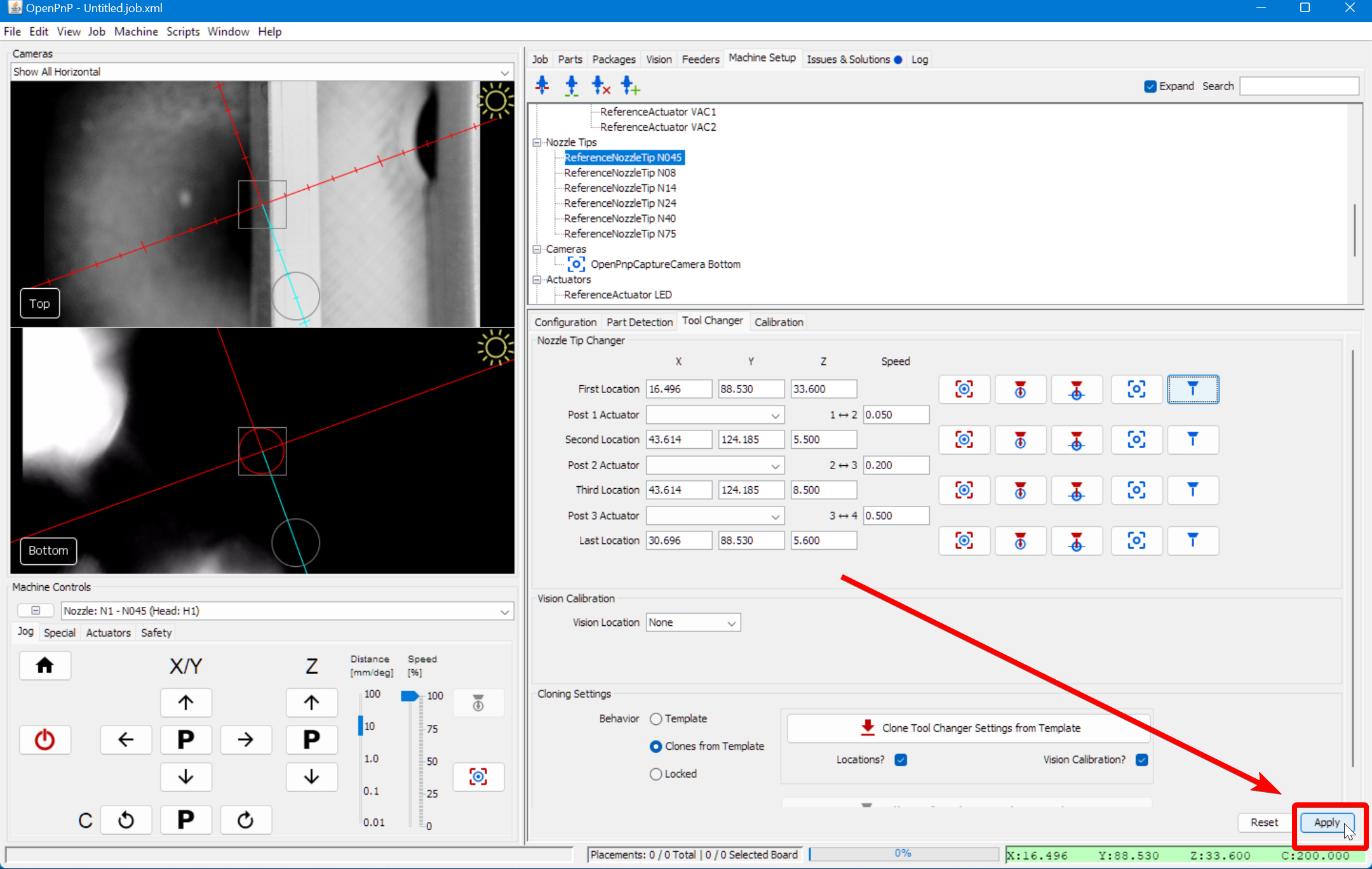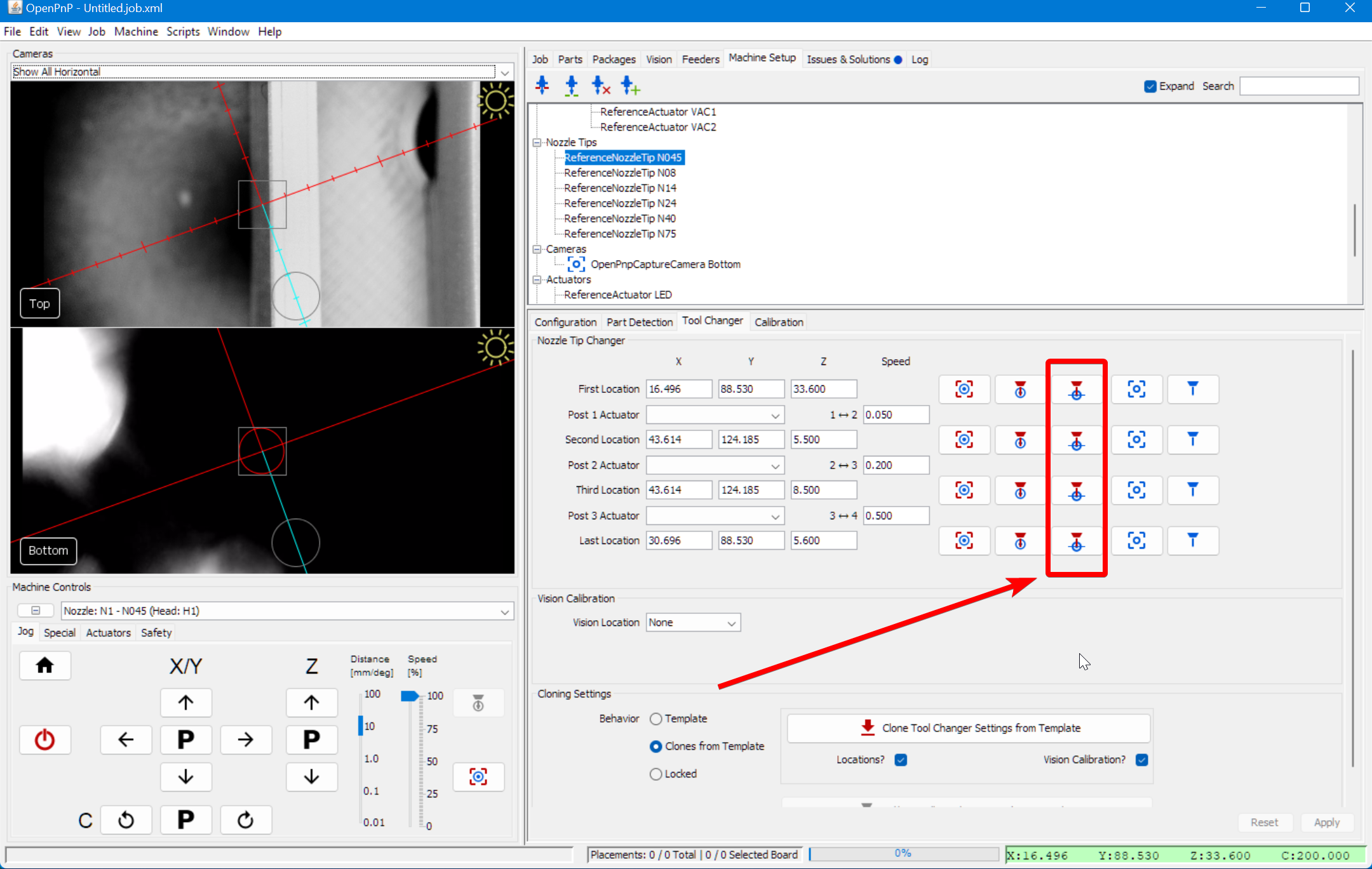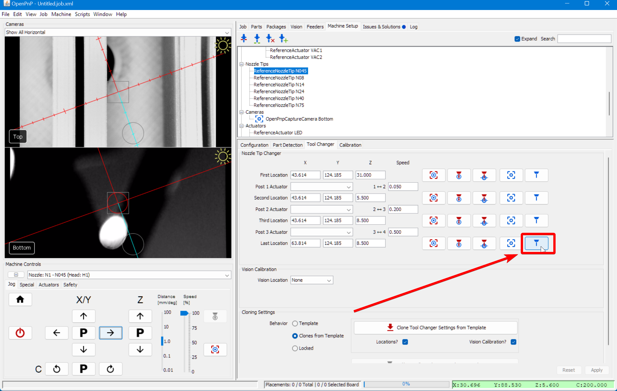14. Repeat the above steps for each of the nozzles you're using. See also the "Cloning Settings" section in the OpenPnP docs.