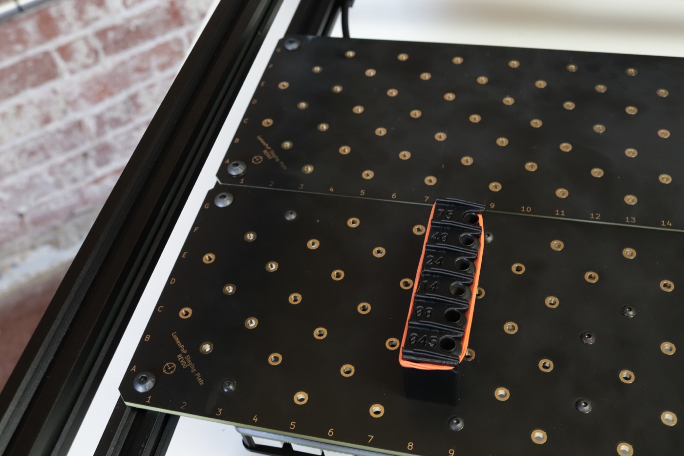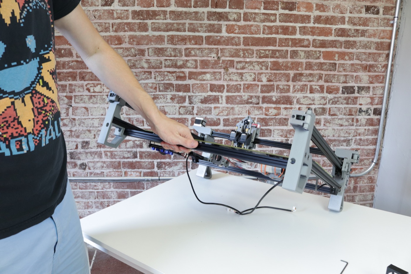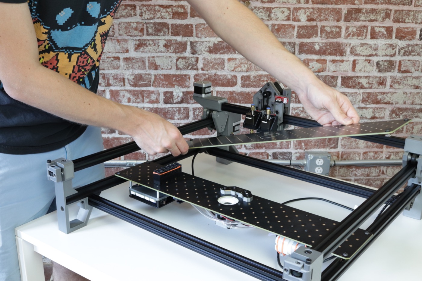 Place the build plate onto the same rail as the staging plate. Ensure the t-slot nuts are fully inserted into the extrusion.