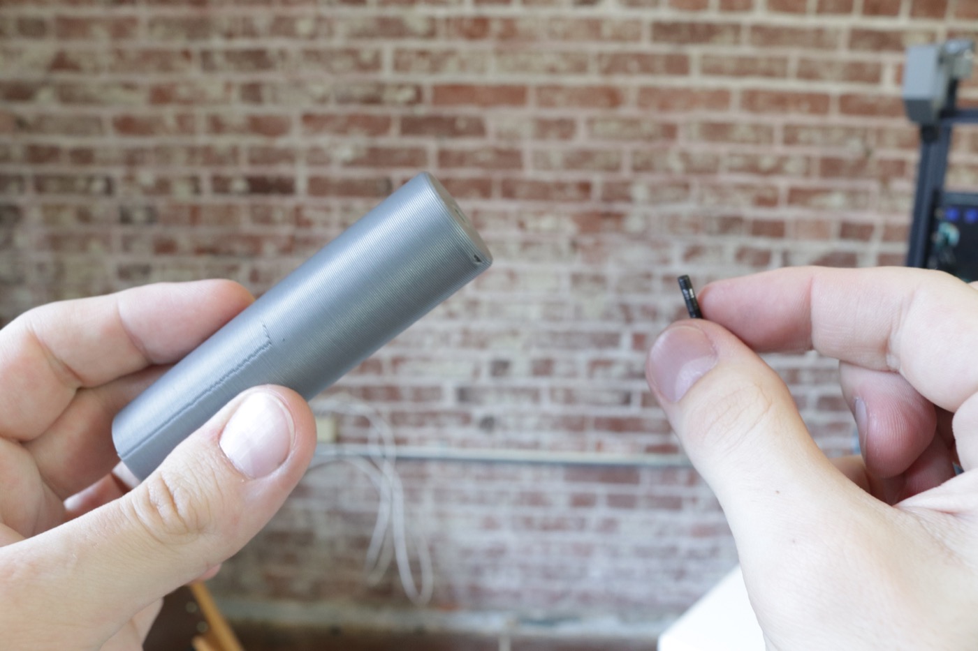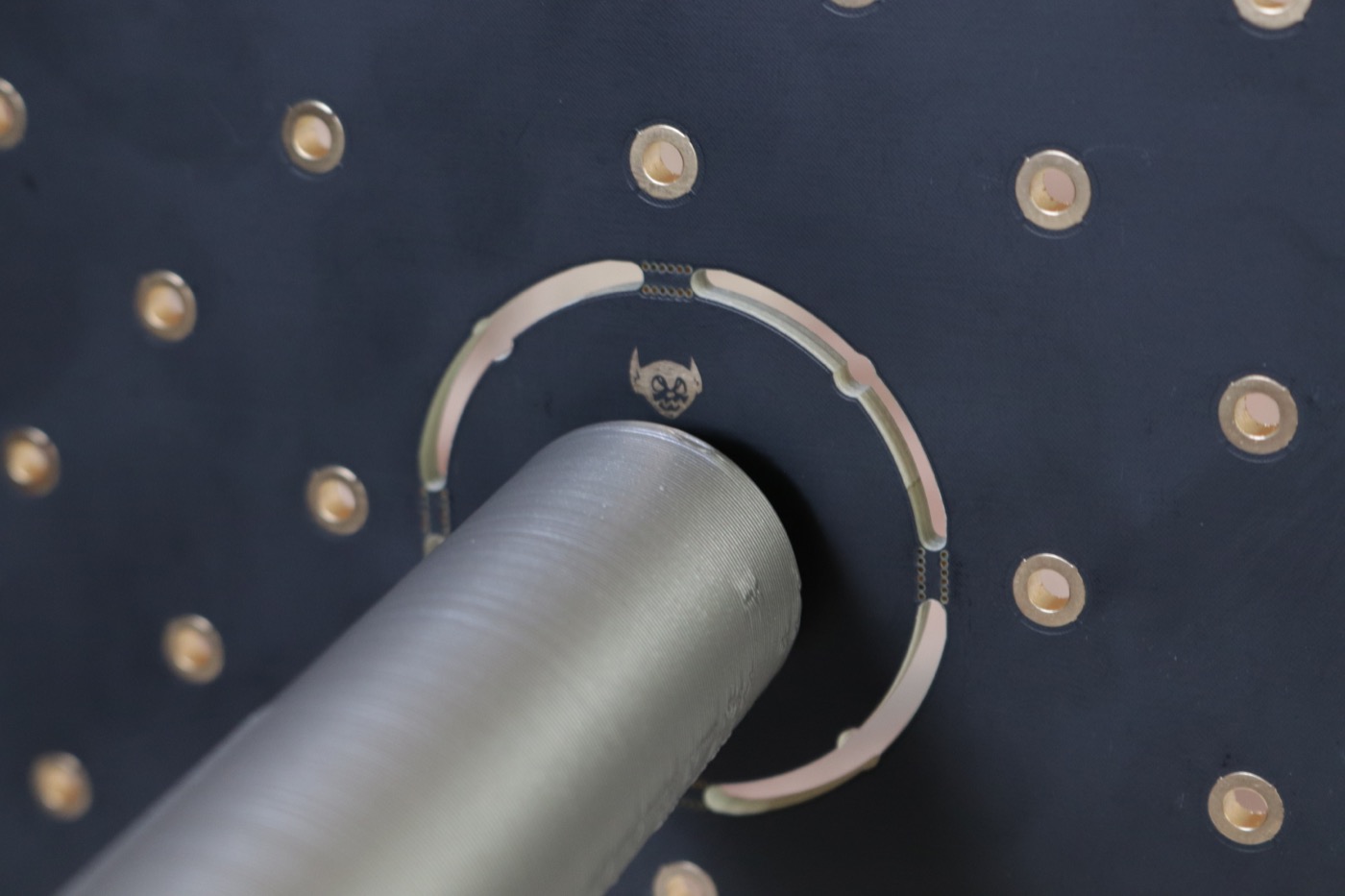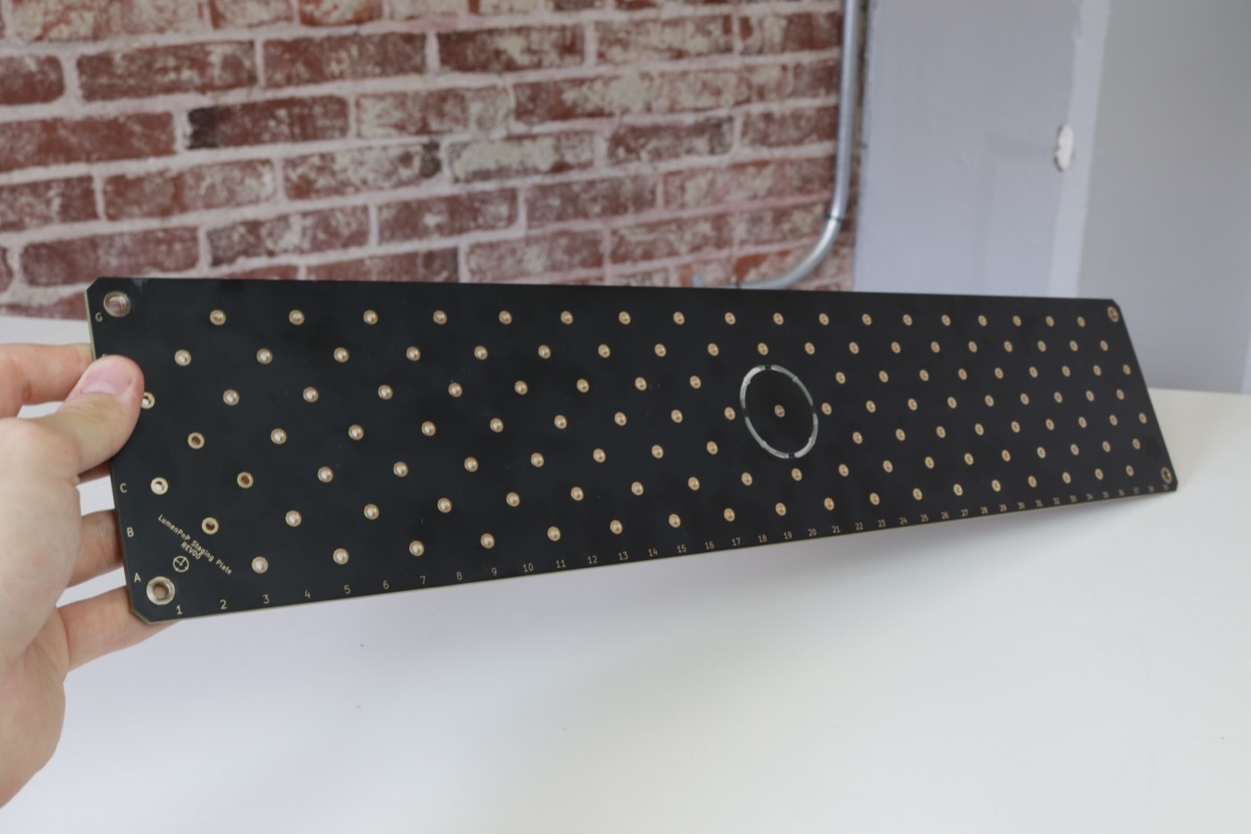 Mount the build plate foot in the center of the circle cutout, right beneath the goblin icon. Tighten the screw you removed earlier in from the top side to secure it in place.