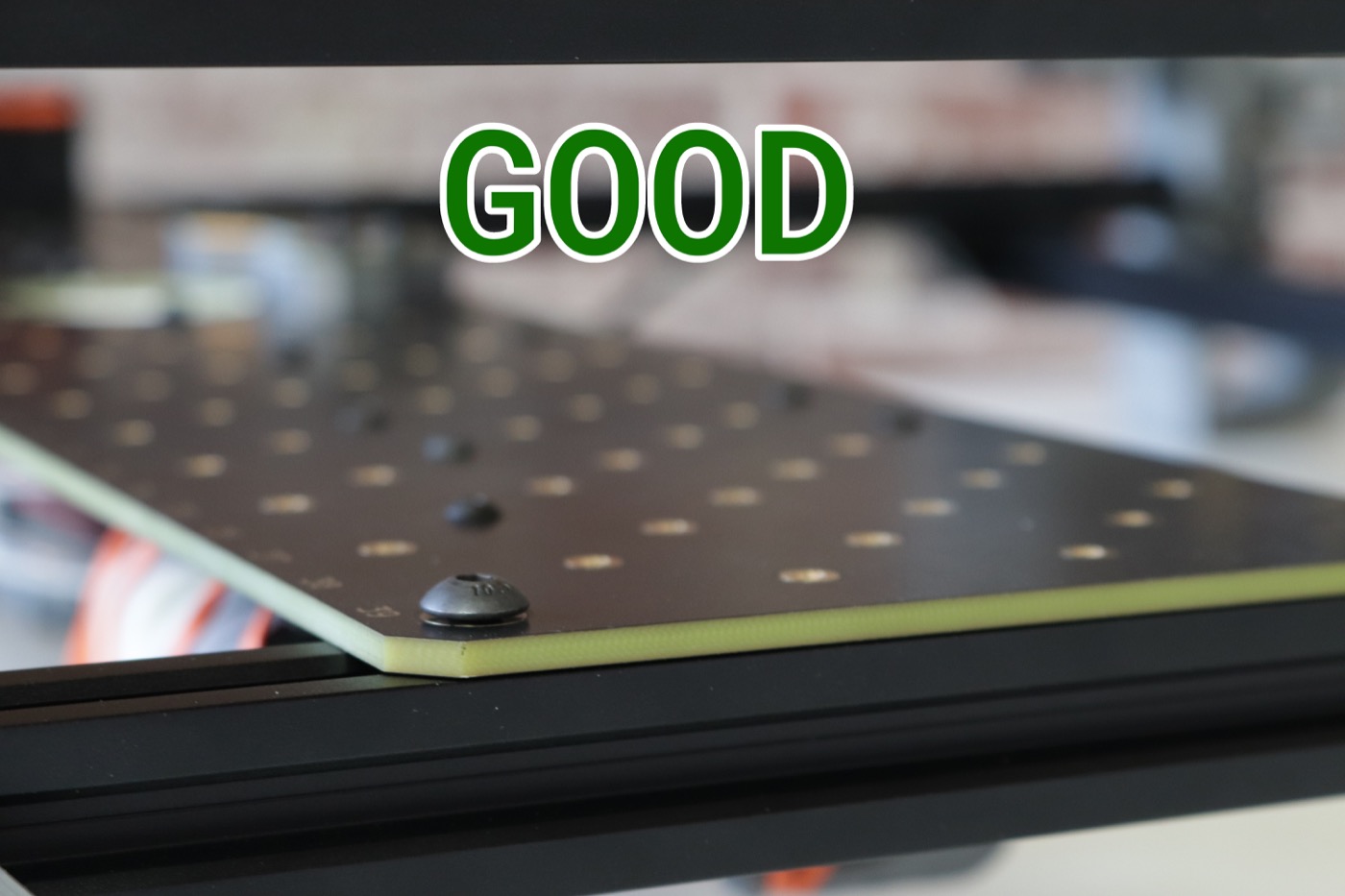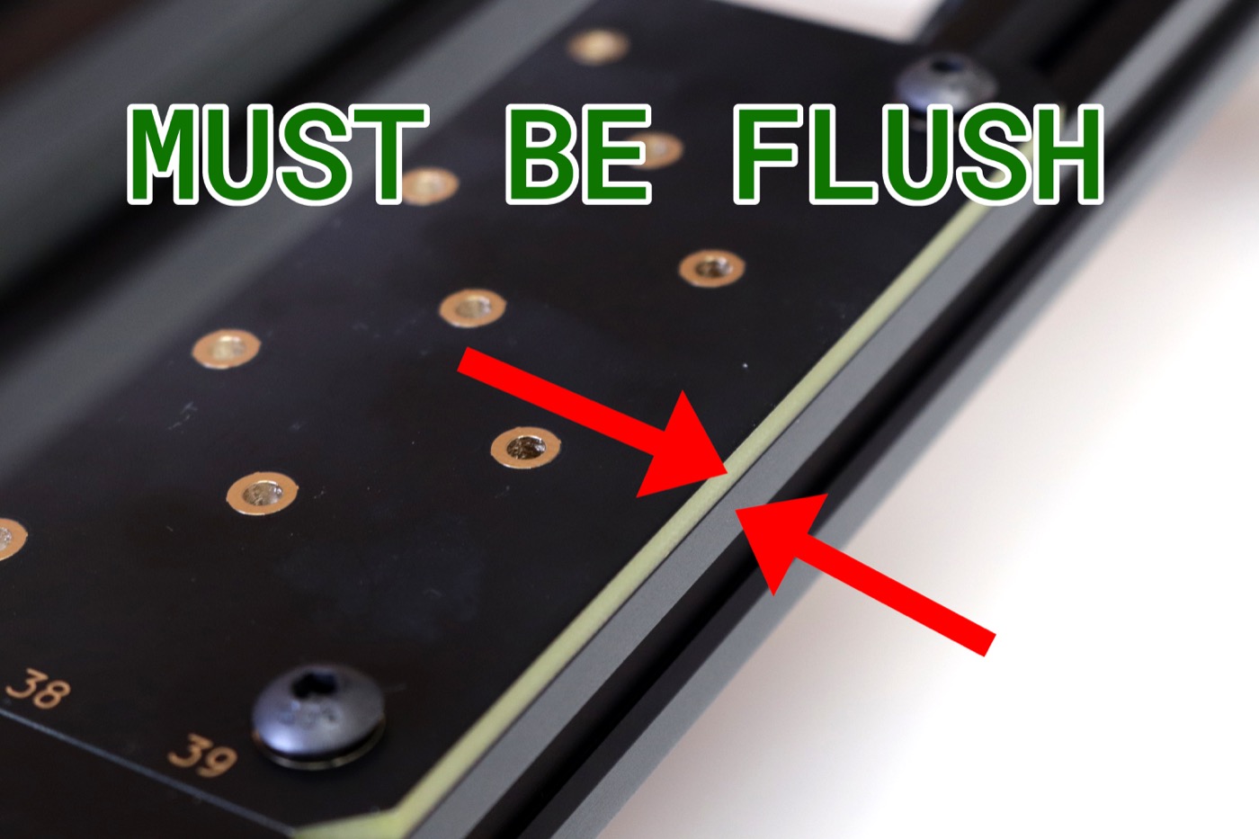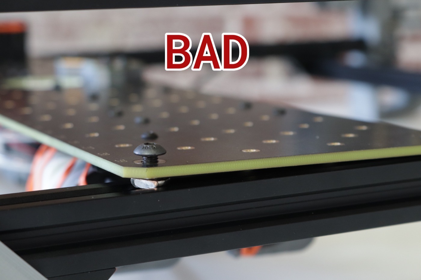 Make sure that the staging plate is sitting flush on the extrusions. The t-slot nut should fit inside the slot in the extrusion.