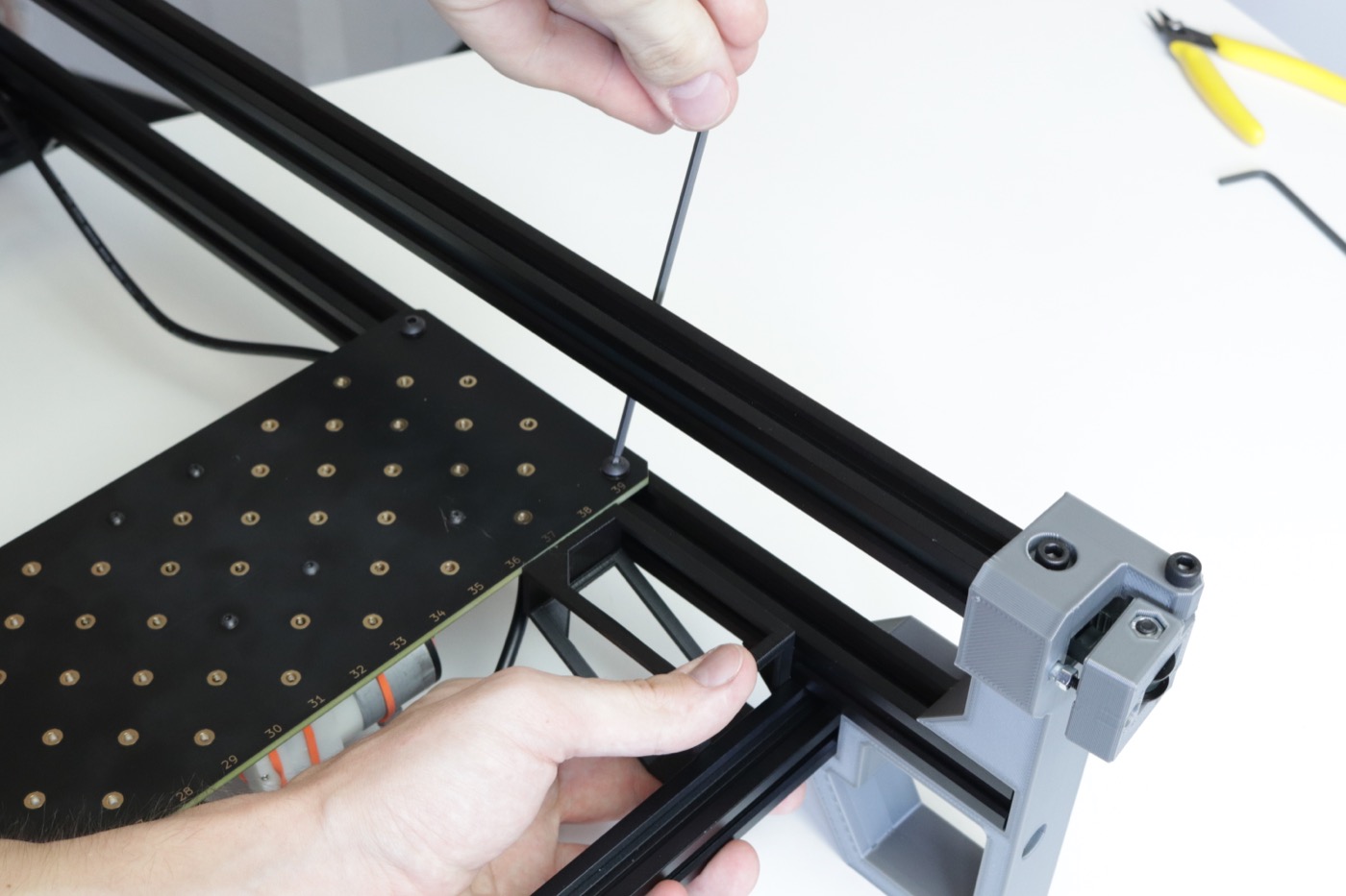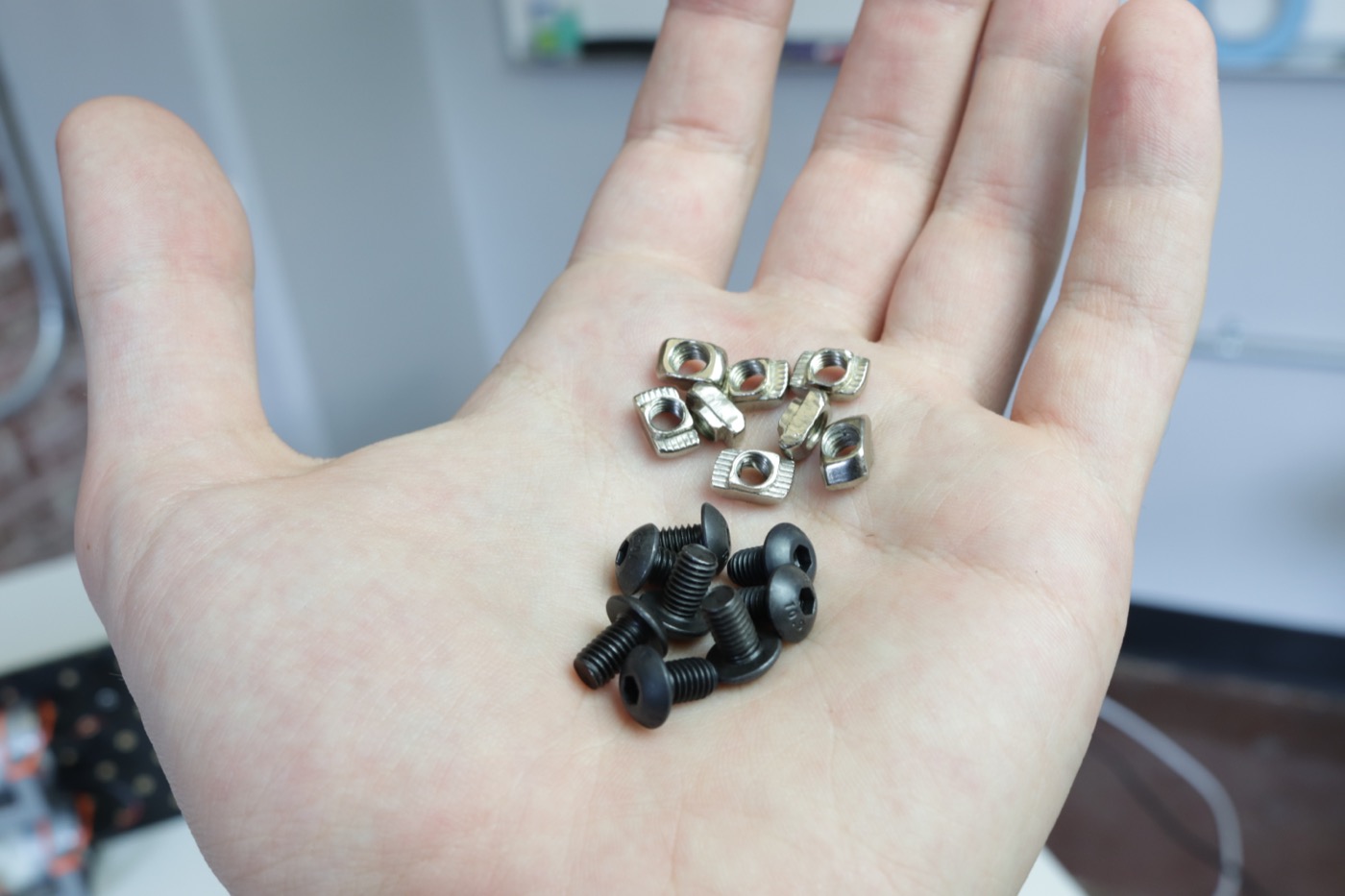 Get 8x M5x8mm button head screws and 8x t-slot nuts from your hardware bag.